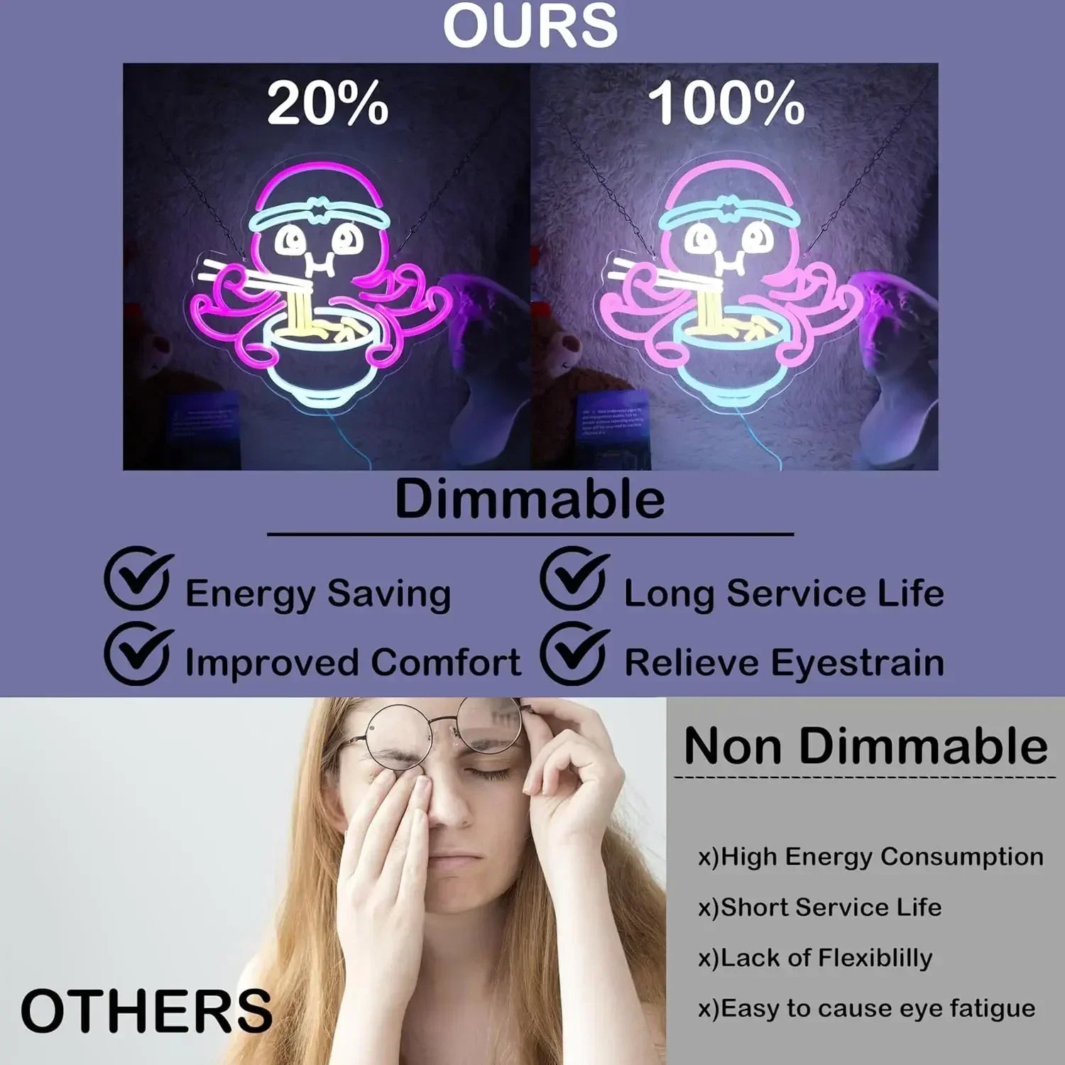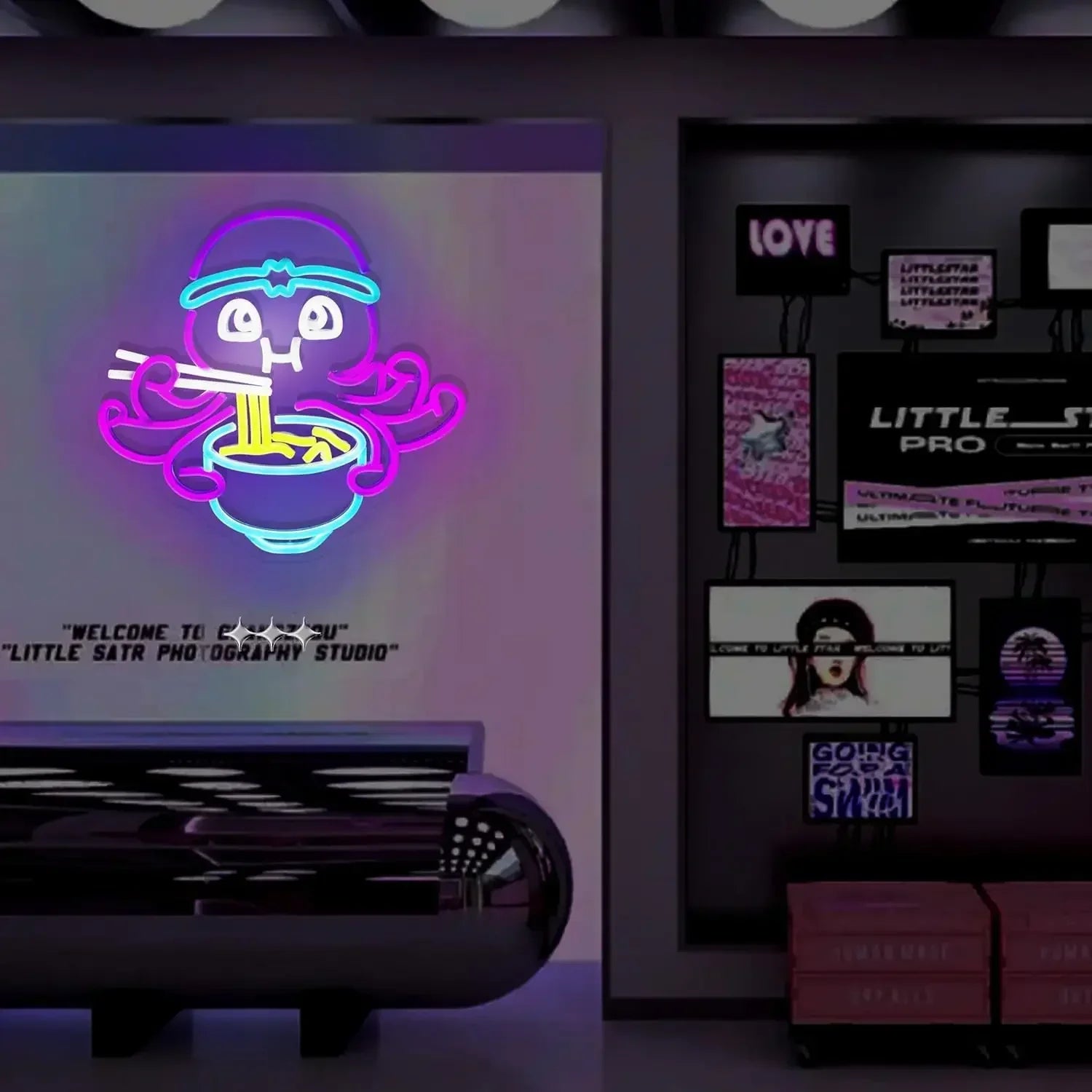 Octopus Eat Ramen LED Neon Light for Wall Decor